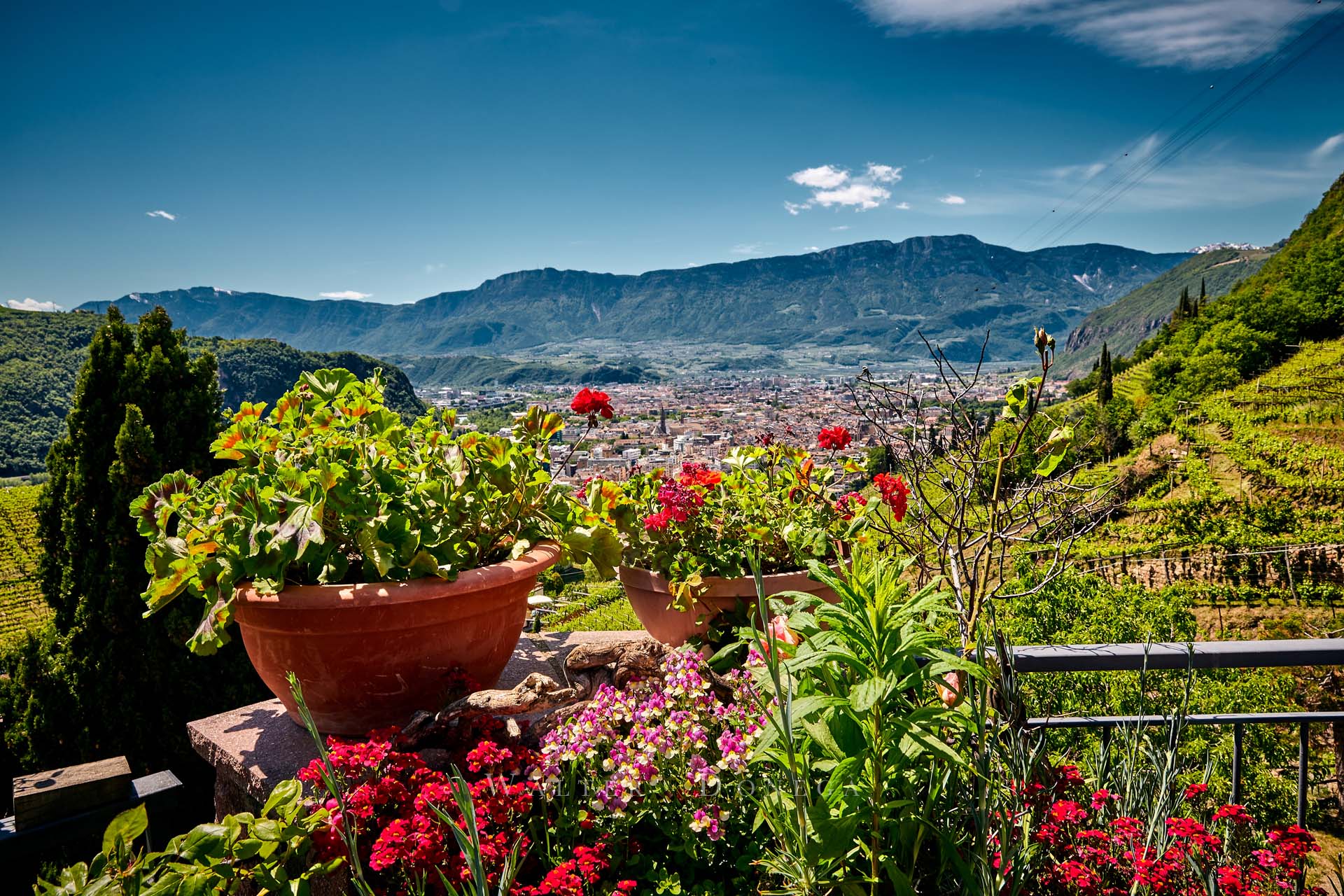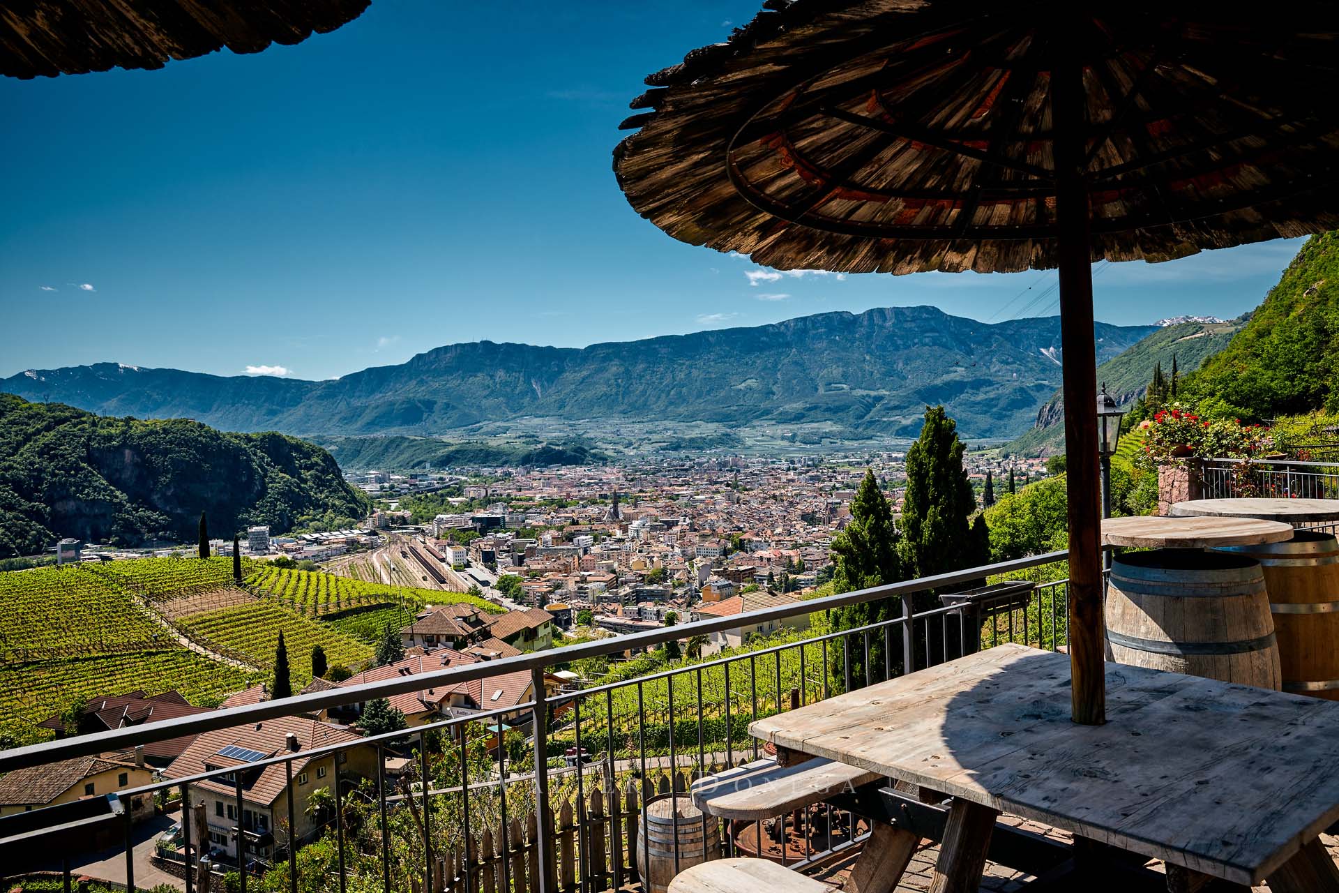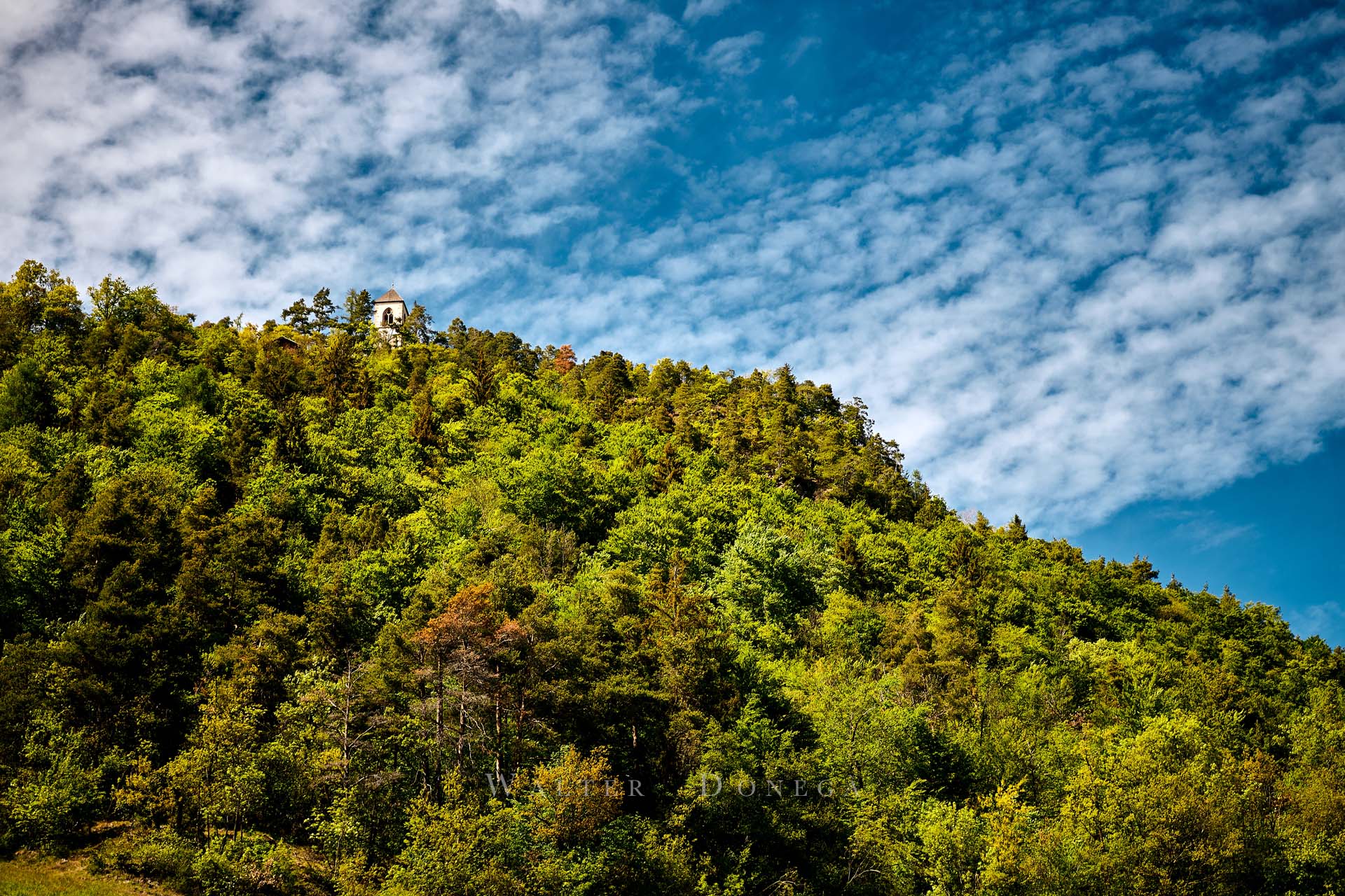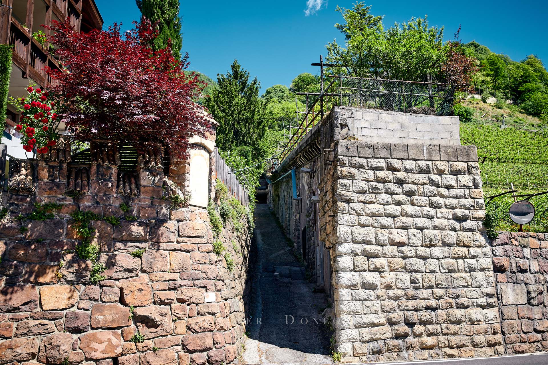 I vigneti a 360 gradi ti fanno subito sentire l’aria di montagna. In corrispondenza della chiesetta una indicazione mostra la via per il sentiero 6 che prosegue su una strada asfaltata. Un primo tratto piuttosto ripido ma che regala emozioni forti grazie al paesaggio.