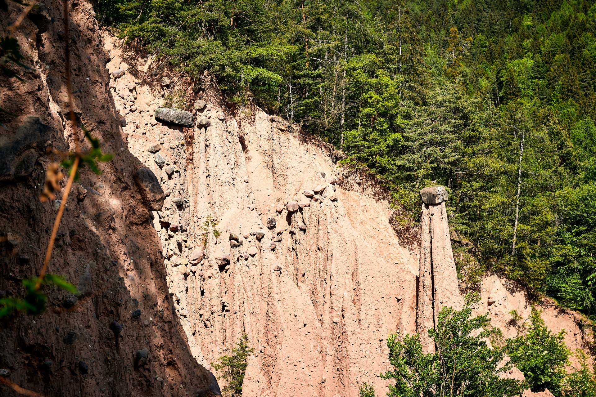 Ad un certo punto un bivio conduce al sentiero 23 che porta alle piramidi di terra del Rio Rivellone.